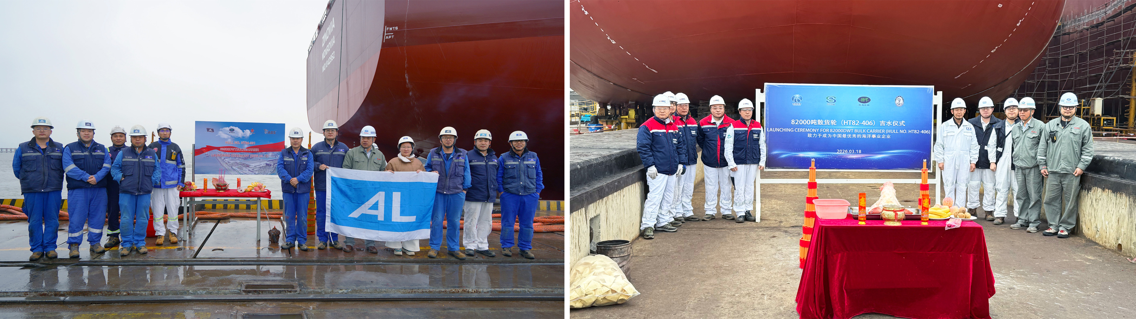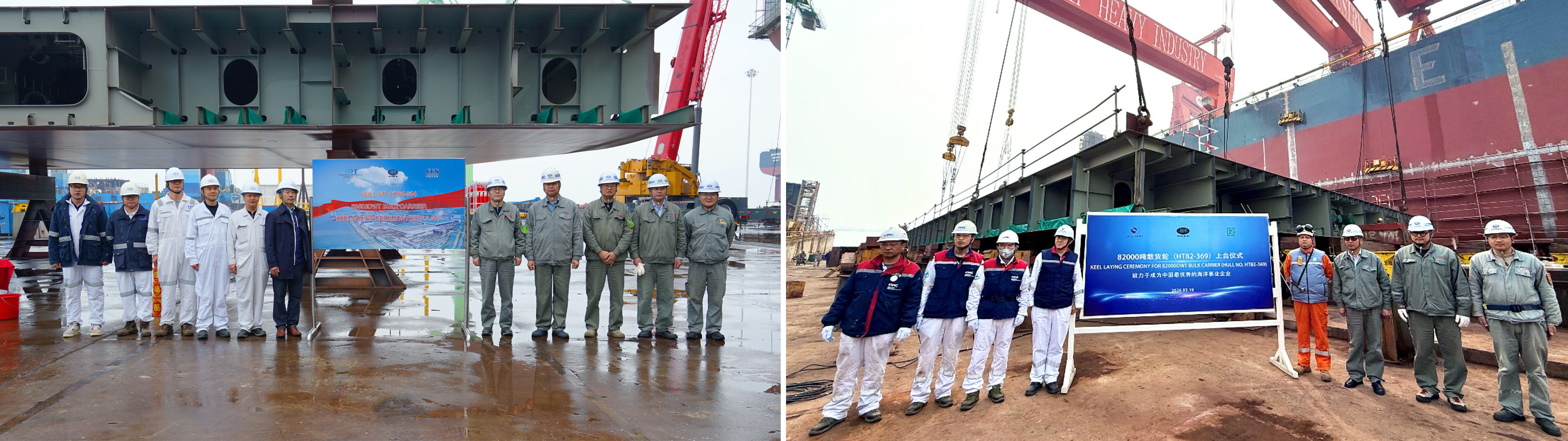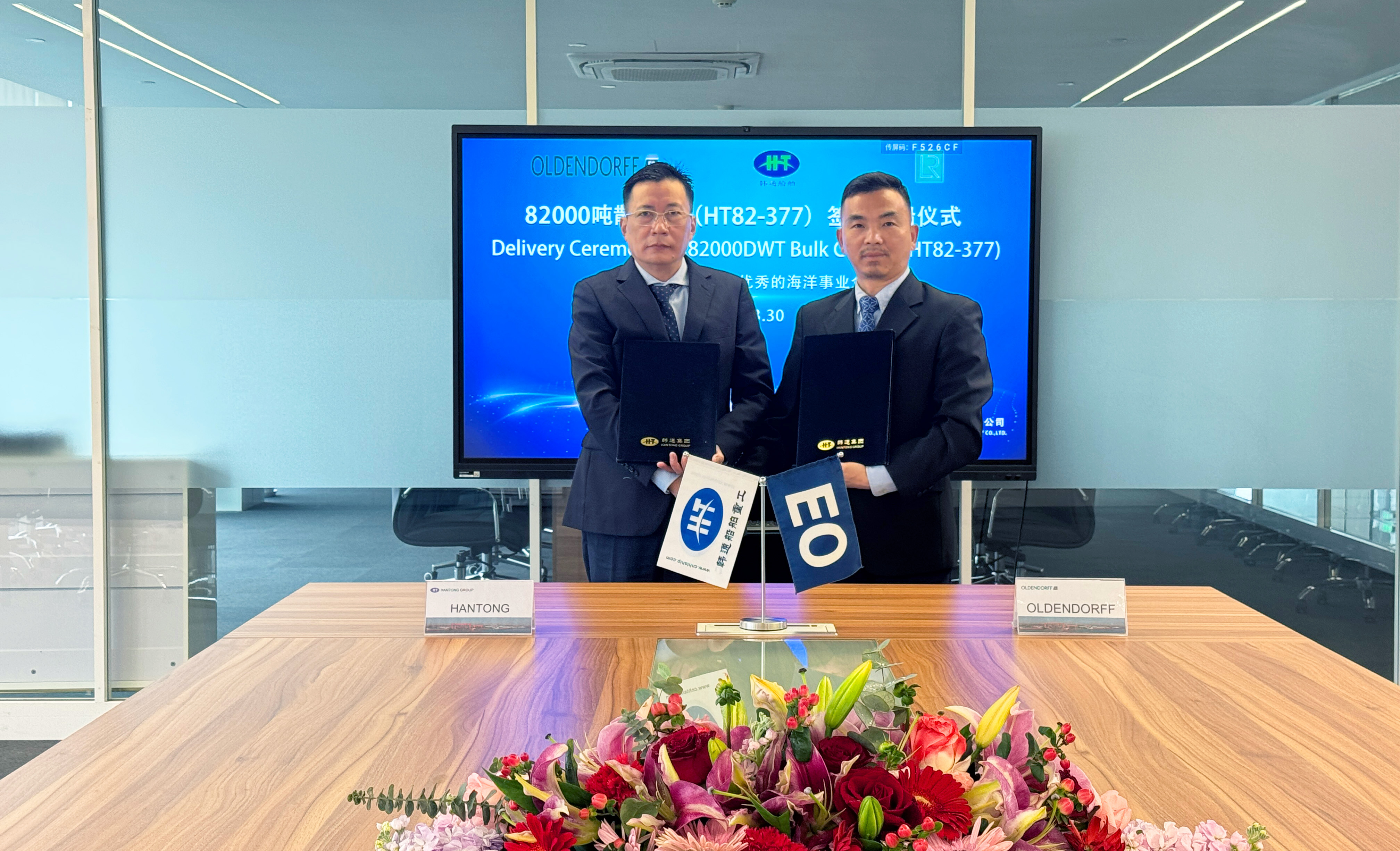 开工仪式 开工节点稳步启动。Trafigura项目HT-OT319-395于3月2日率先开工; Pioneer项目HT64-578、HT64-579于3月12日同日开工。多个新项目的顺利启动,为后续生产注入了持续动能。 重大节点捷报频传 Pioneer项目HT64-384于3月30日按计划上台; Lestari项目HT82-369于3月19日上台。 下水节点方面, HT64-331于3月17日顺利下水;HT82-406于3月18日按期下水。各节点紧密衔接,体现了公司精益建造与过程管控的显著成效。 交船仪式 本月,为OLDENDORFF船东建造的HT82-377船提前4个月于3月30日交付。该船的成功交付,进一步深化了公司与国际一流船东的战略合作关系。 3月份新签订单 3月新签批量成熟船型订单,散货:82k、210k;油轮:114k、VLCC。